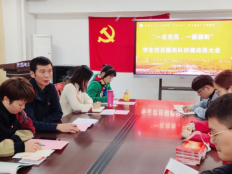 学院党委副书记、副院长张志刚出席会议,并在会上强调此次“一名党员,一面旗帜”学生党员服务先锋队创建,紧紧契合了“不忘初心、牢记使命”主题教育背景,是学院推动学生工作水平更上新台阶的重要举措。他结合当前学院学生党员发挥先锋模范作用的现状,对全体学生党支部党员提出了四点要求:一是要加强党章党规学习,在思想上与党中央始终保持一致;二是要加强党性修养,时刻牢记全心全意为人民服务的宗旨;三是要用实际行动亮明党员身份,提高服务水平,争做先锋模范;四是要紧密联系群众,用好用对服务卡,不断提高服务水平。