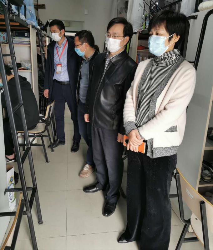 领导带领辅导员们深入学生宿舍开展巡课检查工作,以确保学院教育教学工作保驾护航。经巡查,了解到绝大部分学生能很快将宿舍作为学习的阵地,尽快切换学习模式,全身心投入线上学习,听课过程精神饱满,随时认真做好课堂笔记,当然也有少部分学生还没有完全适应在宿舍进行线上学习的模式,表示会尽快调整,尽早适应。同时,巡课也观测到老师们认真备课,通过录播、直播等形式进行线上教学,辅助以在线讨论、测验等互动式充分调动学生上课的积极性和提高他们学习的注意力和兴趣,确保线上与线下教学同质等效。在课间休息期间,学院领导们仔细询问了学生们在学习和生活等方面的情况,并有针对性给予了一一解答,及时解开了同学们的后顾之忧,使学生充分感受到学院的温暖关怀,为接下来的线上教学高效开展和疫情防控工作取得胜利奠定了基石。巡课后,院长施佺指出,全体学生工作者处在特殊时期,一定要提振精气神,一定要稳打稳扎,定期深入宿舍,摸清摸透情况,做到精准发力,落实落细学生工作,在“疫情防控”这一特殊的考场面前,交上一份满意的答卷。学院党委书记张莉莉强调,要将命运共同体理念植入到具体学生工作中,建立良好、和谐的新型师生关系,让我们的工作走进学生、贴近学生,让学生的心灵走近我们、相信我们,实现疫情防控和人才培养双轮驱动并进。