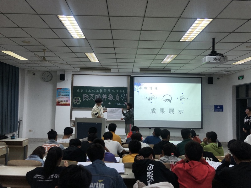 欢声笑语之后,活动现场通过ppt、视频展示向大家介绍了艾滋病的流行趋势、流行特点、传播途径、艾滋病的特点和防艾方面的小知识,不仅提高了同学们的防艾知识水平,还培养了同学们的自爱意识,帮助同学们如何正确预防对艾滋病的接触。