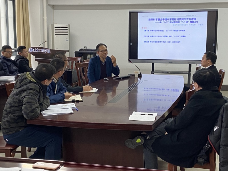 学术报告会后,针对国家基金申请书撰写中存在的一些共性问题以及如何有效提高申请书的撰写质量,朱忠奎教授又为青年教师做了题为《NSFC准备的3 X策略》的专题辅导,他从“申请书总体思路建立:由‘3+X’确定题目和摘要”、“申请书正文的形式与逻辑:基于‘八个词’的覆盖”、“其他方面的感悟与考虑:态度、过程与细节”等三个方面对如何撰写高质量基金申请书进行了详细解读,辅导报告后,朱忠奎教授和老师们进行了深入交流,并对部分老师的基金申请书提出了具体指导意见。