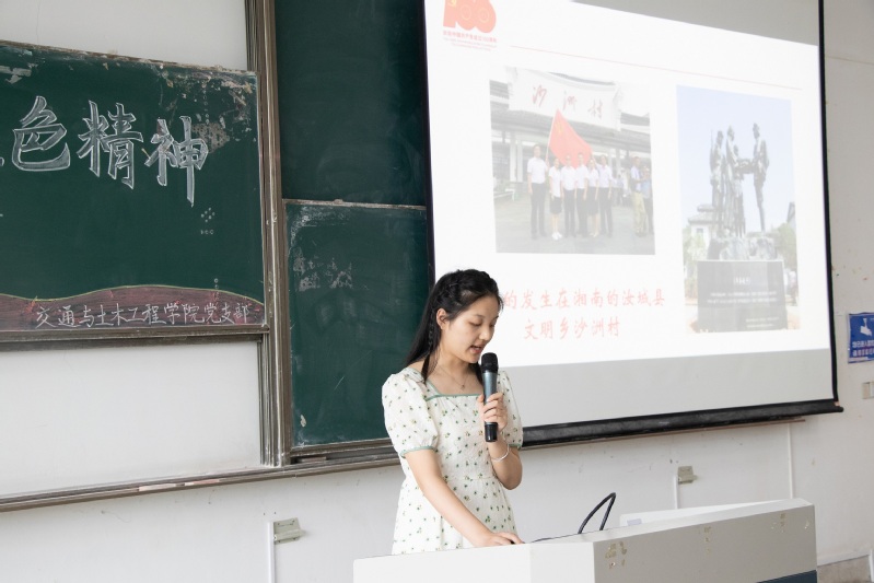 会上,辅导员王振以大庆油田为由头,讲述了以爱国精神、艰苦创业精神、求实精神、奉献精神为核心的大庆精神,激励学生要积极主动,勇担社会责任。学生党员许阳通过“十块银元心连心”的故事,告诫同学们要在奋斗中释放青春激情,以青春、奋斗为民族复兴铺路架桥;学生党员朱翊晗向大家讲述延安整风运动,启示学生要把延安精神作为团结奋进的强大动力;学生党员蒋函静讲述了红军长征的伟大历史,生动诠释了长征精神的时代内涵;学生党员单小轩讲述了“半条棉被”的故事,希望大家能继承与群众风雨同舟、命运与共对的赤子情怀。