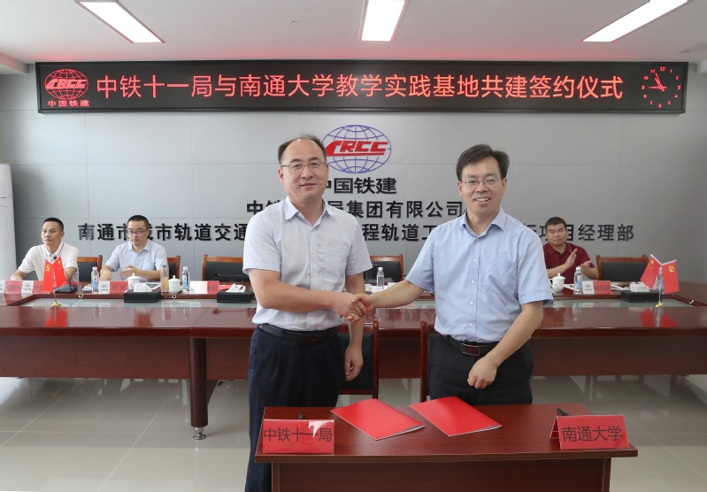 施佺对此次校企共建表示祝贺,对南通城市轨道交通有限公司与中铁十一局集团有限公司多年来给予学院的关心和支持表示衷心感谢。他介绍了学校及学院的办学历史、学科建设、专业特点以及人才培养概况,强调了先校长张謇先生提出的“学必期于用、用必适于地”的办学理念,希望今后以此次签约为契机,进一步加深与轨道公司、中铁十一局在人才培养、技术研发等方面的交流和合作,努力开创“合作促发展、打造新亮点”的产学研融合发展新局面,持续为企业输送更多专业技术人才,积极打造校企合作的典范。他也希望有越来越多的毕业生参加到南通城市建设中去,为共建美好南通贡献力量。