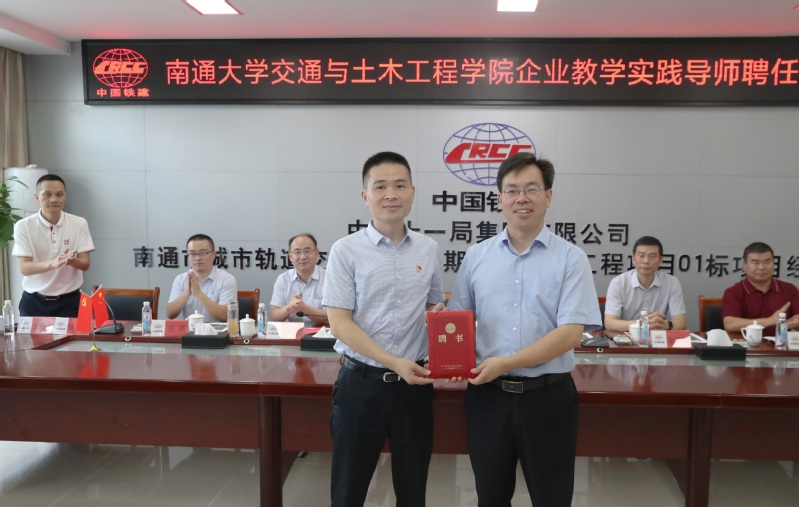 7月21日,我校教学实践基地共建协议签订暨挂牌仪式在中铁十一局南通地铁项目部举行。yl23455永利集团院长施佺,南通城市轨道交通有限公司党委副书记石星恺,中铁十一局华东建设有限公司副总经理谢长征出席签约授牌仪式,并共同见证了公司“导师带徒”拜师仪式。