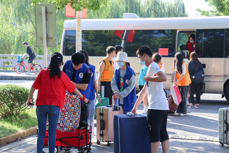 因疫情防控需要,新生家长不能陪同入校。学院党政领导、师生党员以及高年级学生300多名志愿者主动请缨,积极参与新生返校志愿服务活动。志愿者们身穿黄色马甲或蓝色马甲,按时抵达服务点,从早上6点30分到晚上9点,都能看到他们忙碌而又欢快的身影。学院党委书记张莉莉、院长施佺与最早一批志愿者一同前往学校南门引导和指挥迎新工作,详细询问新生报到情况,并叮嘱学生志愿者要热情服务,及时提供帮助,让每一位前来报到的新生们都感受到学院这一大家庭的温暖和关怀。