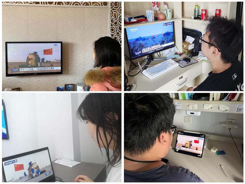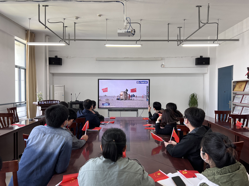 受疫情影响,学院各支部党员分散在办公楼、宿舍楼、隔离点和各自家中,通过线上平台观看直播。学院党委书记张莉莉认为,在学校抗疫形势严峻,师生精神高度紧张的情况下,神舟十三号载人飞船返回着陆是一件鼓舞人心、令人振奋的大事,通过见证这一伟大时刻,能够激励广大师生持续筑牢听党话、跟党走的思想根基,发扬“特别能吃苦、特别能战斗、特别能攻关、特别能奉献”的航天精神,为学校“战疫”进一步统一思想,凝聚力量,坚定必胜信心。