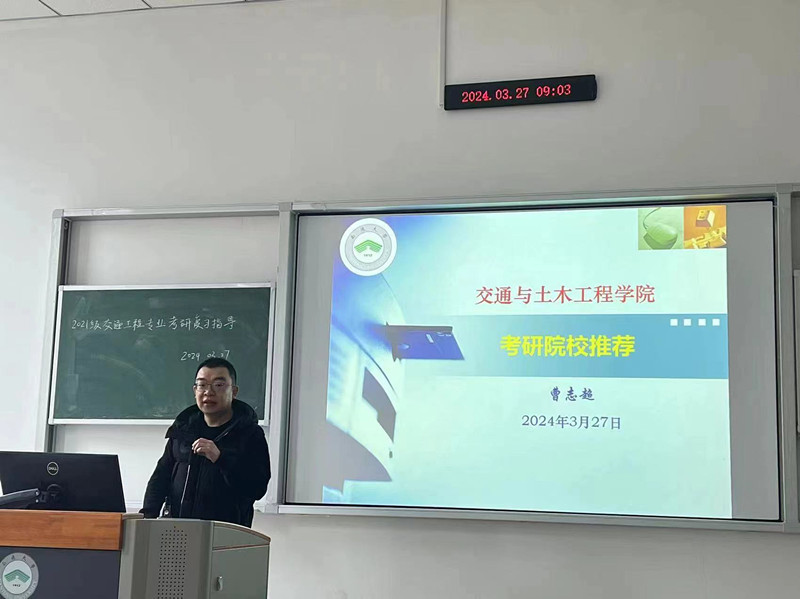 交通工程专业专场中,曹志超老师向学生们介绍了交通工程专业近两年考研选择的地区和学校等分布比例,引导同学们搜集信息、合理报考学校和专业,并给同学们分享了宝贵的择校经验。