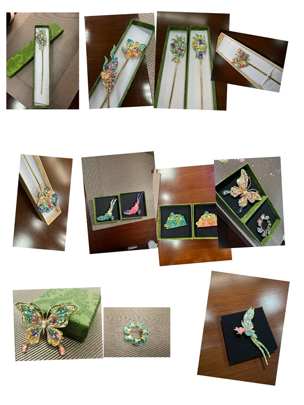 在大家期待的目光中,主讲老师从螺钿的简介、起源与发展、寓意及象征、现代运用以及工艺制作流程等方面介绍了中国特有的传统艺术瑰宝——螺钿的相关知识。讲解完毕后,老师们摩拳擦掌、跃跃欲试,迫不及待地想要亲手制作一枚螺钿饰品,在细碎镶嵌之间,用心感受古朴典雅的传统艺术之美。大家纷纷用提前备好的材料和工具操作起来,只见老师们小心翼翼地将胶水均匀涂抹在底托上,随后用镊子夹取螺钿碎片进行粘贴并轻轻按压和调整它们的位置,确保它们牢固附着在底托上,形成令人满意的图案。胶水干燥后,大家又开始涂抹亮油,增加成品的光泽度,同时更好地保护螺钿。经过认真细致的操作,一支支发簪、一枚枚胸针……不同颜色和形状的螺钿成品五色斑斓,流光溢彩,静静散发着温润而迷人的光泽,将昔日的绮丽与典雅和源自岁月深处的缕缕芳华悉数展现。
