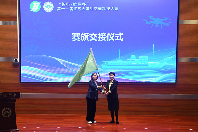 大赛最后举行了赛旗交接仪式,南京航空航天大学将承办下届江苏大学生交通科技大赛。